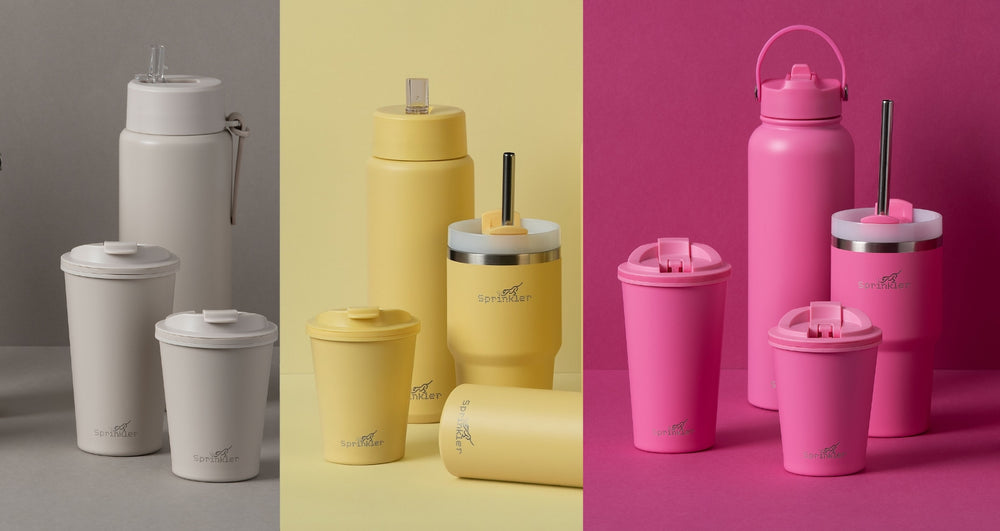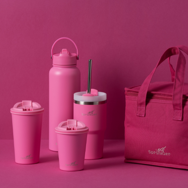 From the Leo, Bella, Alfie and Murphy insulated bottles to the Coco smoothie tumblers and Luna coffee cups, our collection is designed for those who value both function and fashion. Whether you’re on the move or relaxing at home, Sprinkler – Your Everyday Bestie is here to keep you hydrated and looking good.