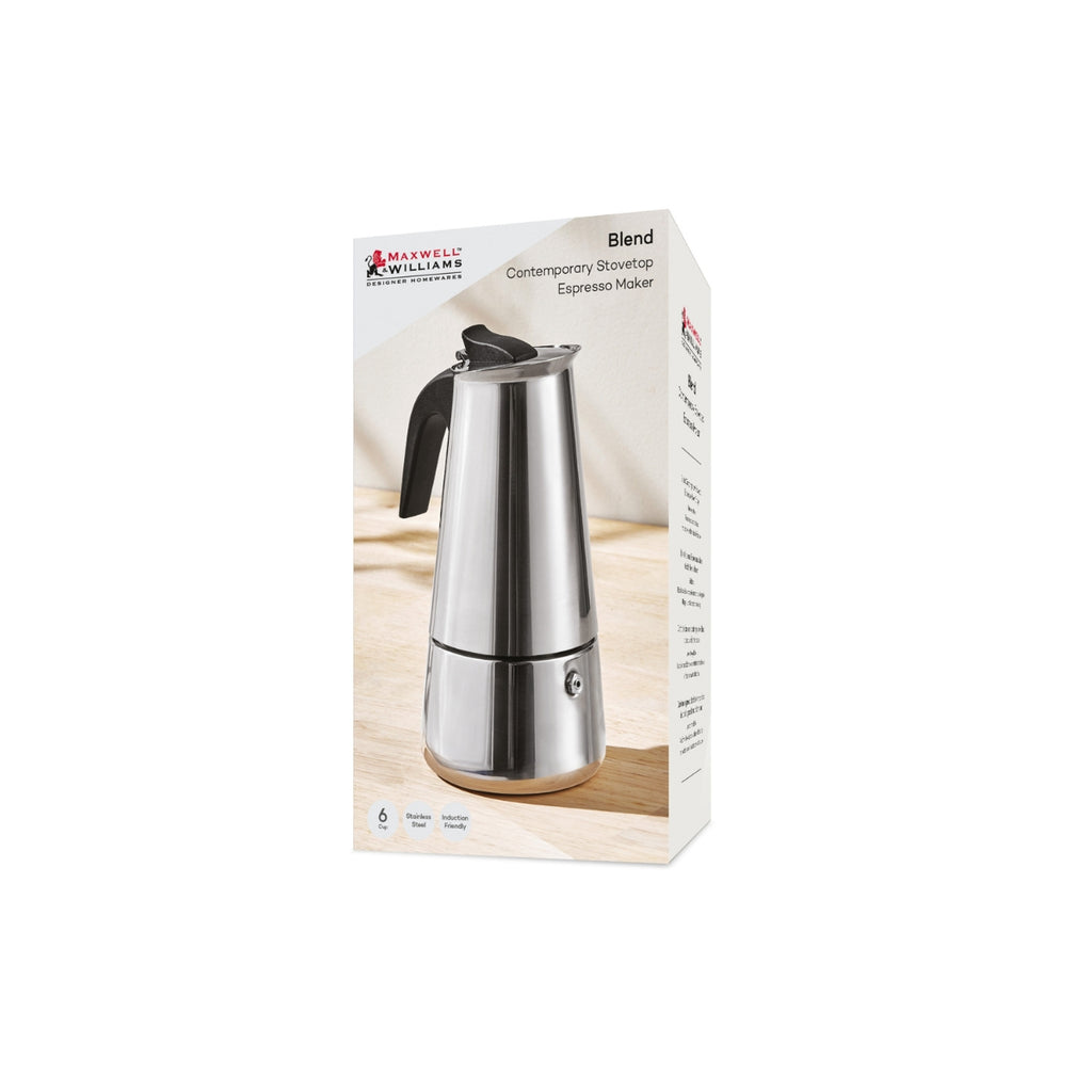 Craft your perfect cup of Italian-style coffee with the Blend Contemporary Stovetop Espresso Maker. Made from high-quality stainless steel, this sleek and modern design is suitable for all stovetops, and holds up to 6 cups. Bring designer style to your morning routine and enjoy a full-bodied, flavorful brew.