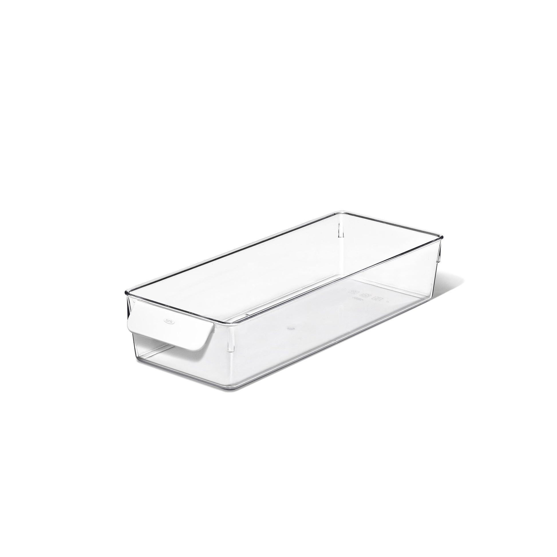 The Oxo Good Grips Fridge Bin is 15 cm x 38cm x 8cm, making it an ideal size for organising food in any refrigerator. The sturdy, clear design provides visibility and organisation, while the round handle offers superior comfort. The smooth base glides easily on refrigerator shelves for effortless access.