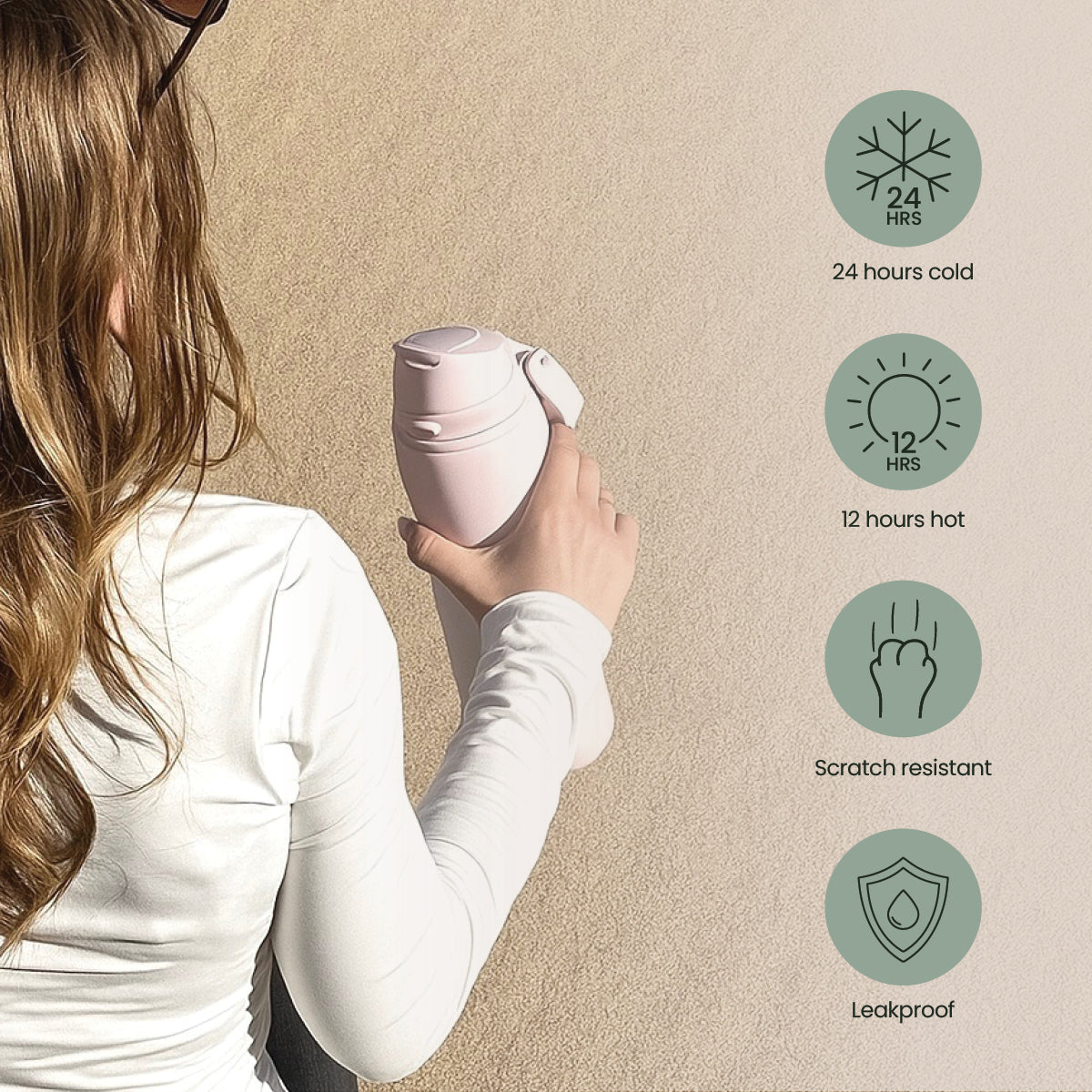 Crafted from premium stainless steel, Leo features double-wall insulation to keep drinks icy cold for up to 24 hours or hot for up to 12. The leakproof flip lid gives you drip-free sipping, while the wide-mouth opening makes it easy to add ice cubes or pour smoothly.