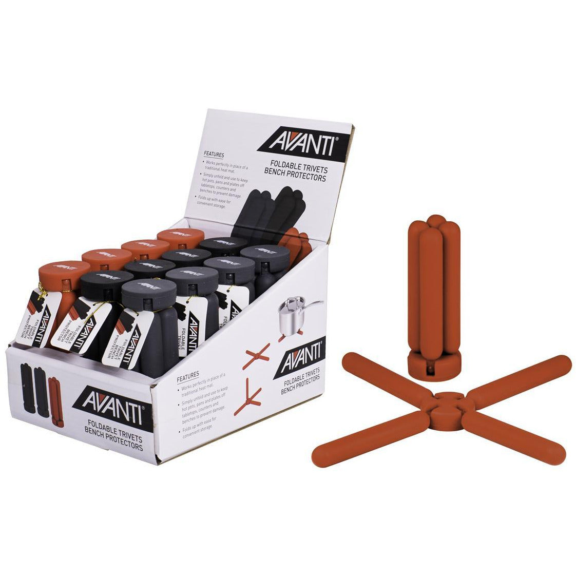 The silicone trivets from Avanti have a small collapsible shape for easy storage. To use under pots, dishes, pans, bowls, or plates, unfold them. It is made of professional-grade materials and has a unique design that dresses up a table. The trivet can withstand heat up to 375 degrees Fahrenheit and is BPA-free and dishwasher safe.